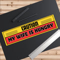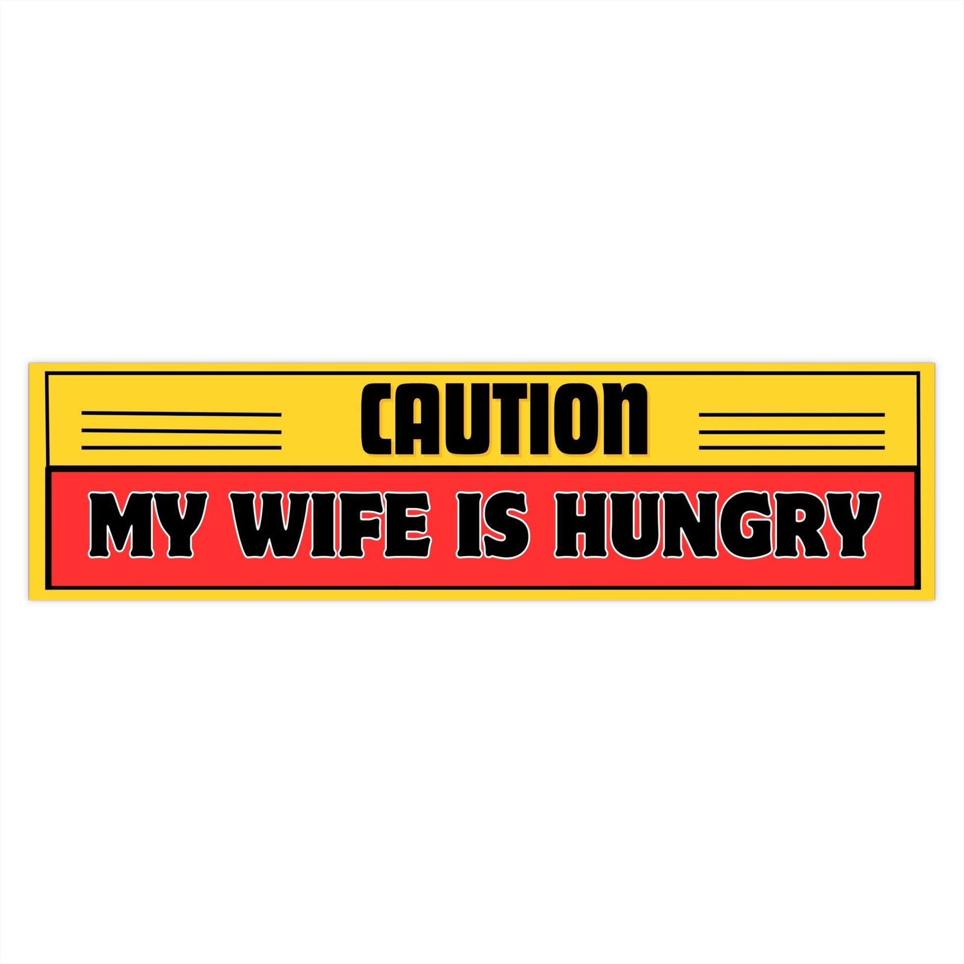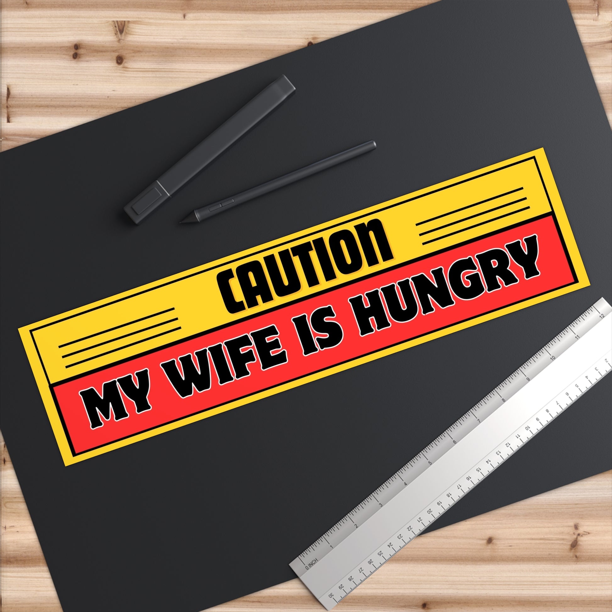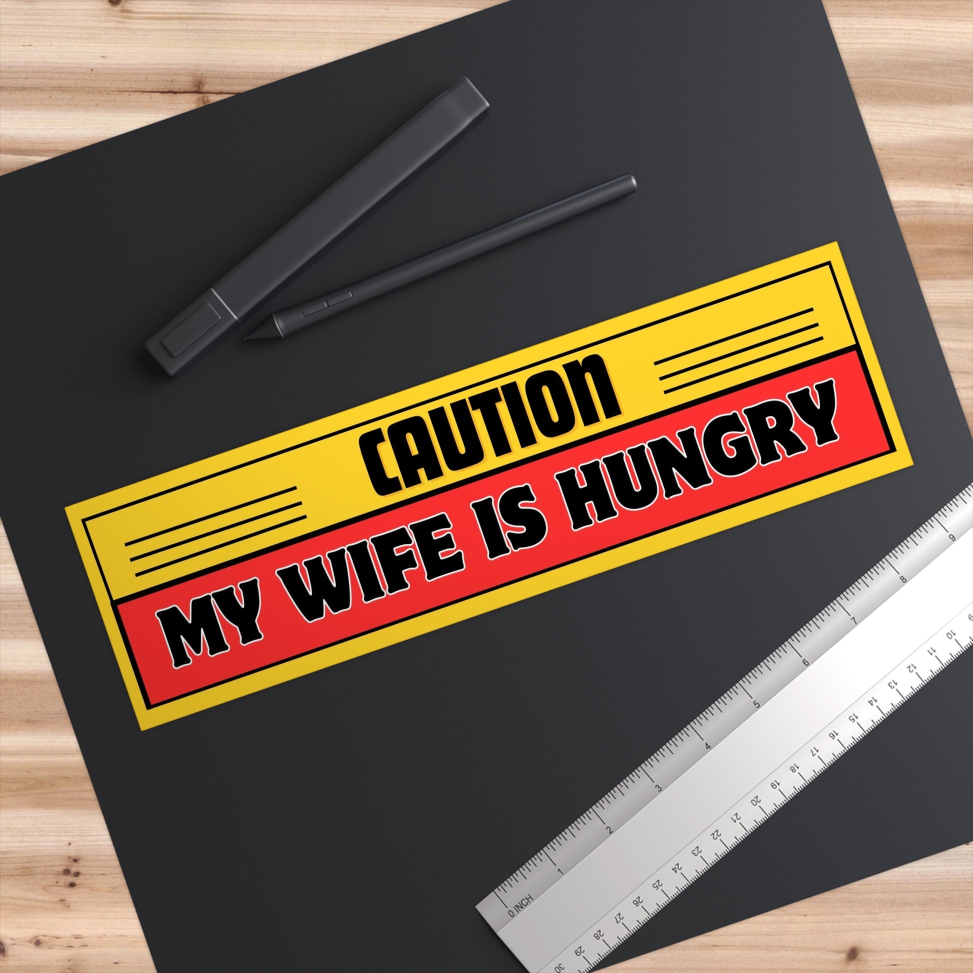 Caution My Wife Is Hungry Bumper Sticker | Yellow Red Warning Design