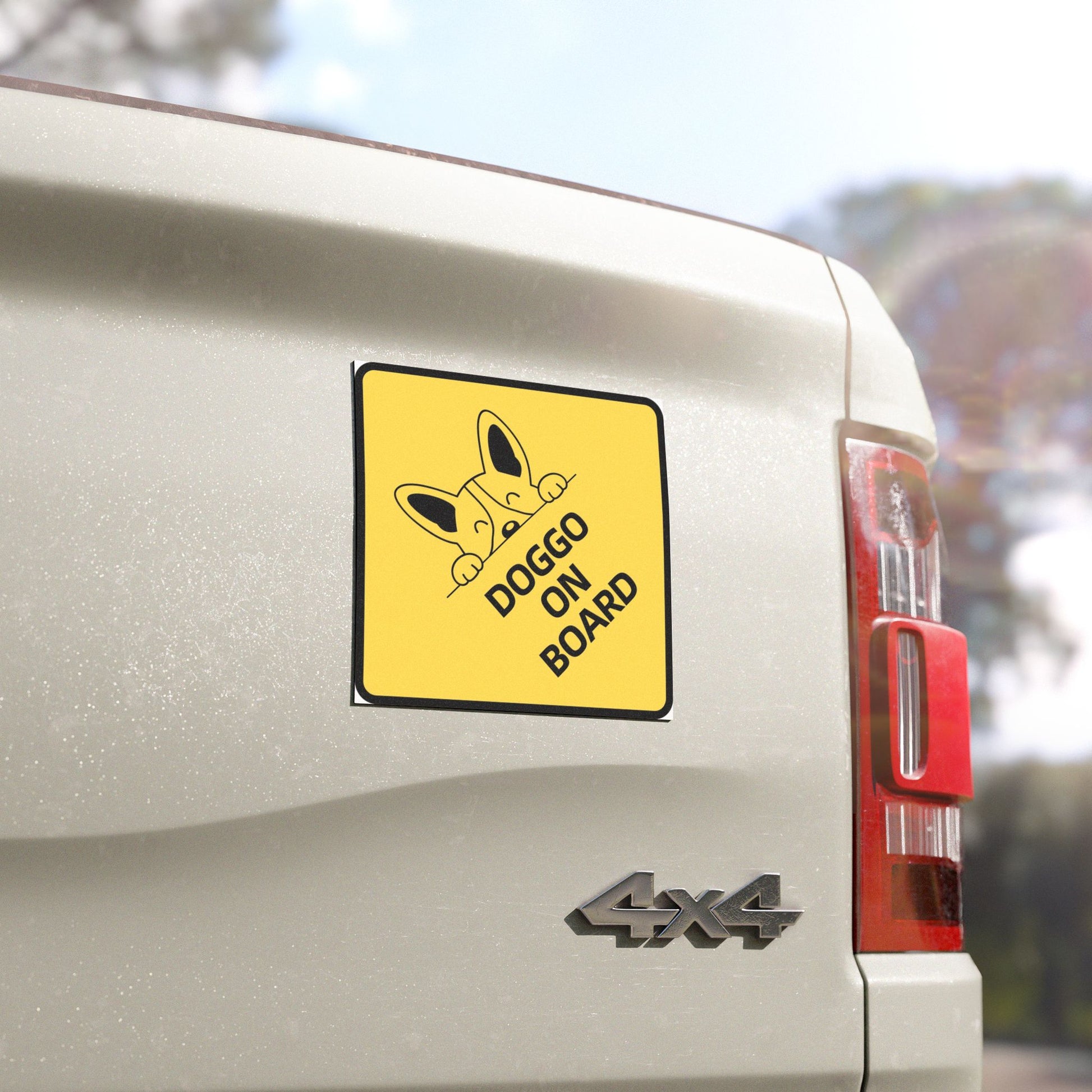 Doggo On Board Car Magnet | Cute Puppy Warning Sign, Yellow Square