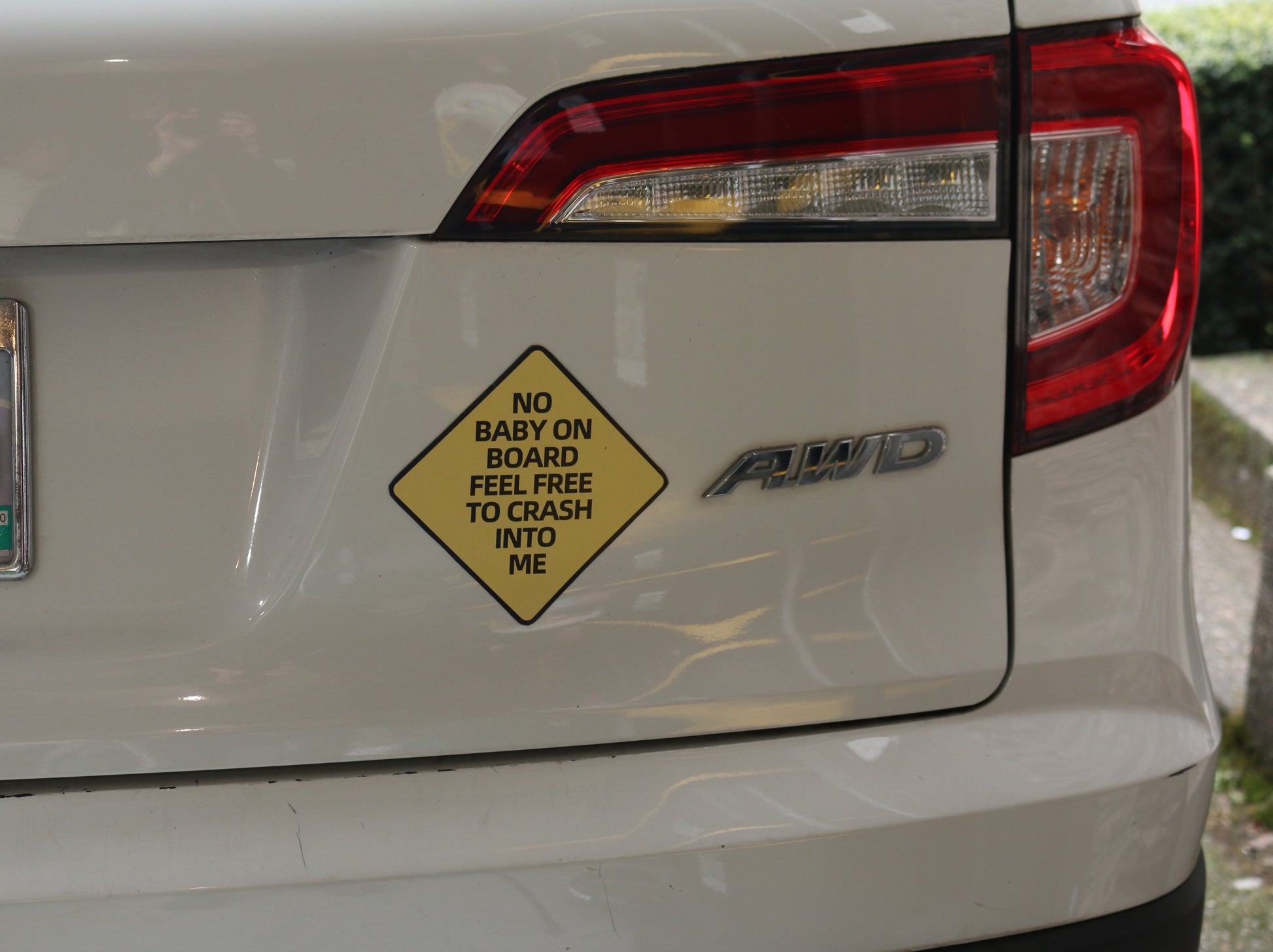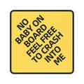 No Baby On Board Feel Free To Crash Into Me Car Magnet | Yellow Warning Sign
